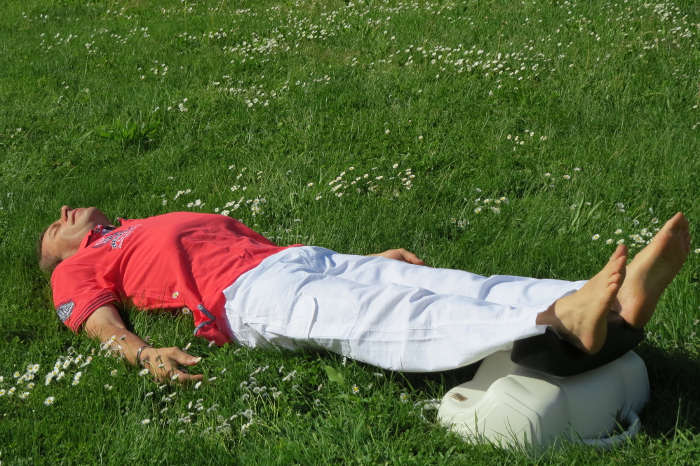 Il n’y a aucun effort à accomplir, seul un vrai moment de plaisir à s’offrir, il s’agit de s’allonger au sol sur un tapis de gymnastique ou un matelas fin, de poser les chevilles sur les reposoirs et de se laisser doucement bercer par le mouvement régulier de droite à gauche donné par la Chi Machine.