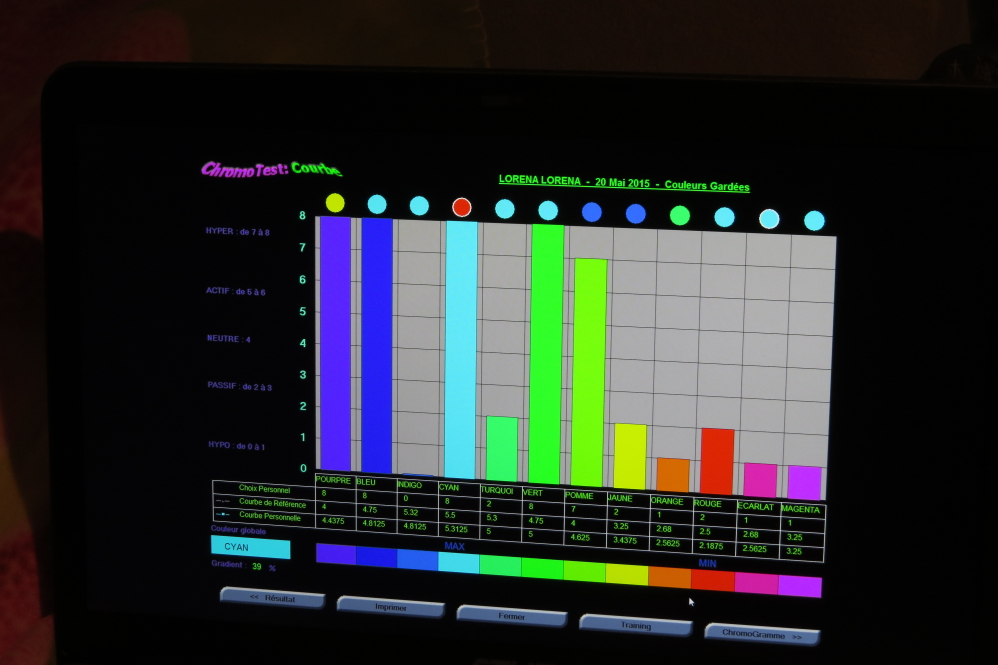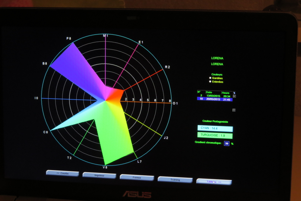 Le logiciel effectue une moyenne et une courbe à partir de laquelle nous vous donnons une interprétation de votre état psycho-affectif, indiquant aussi les organes qui sont concernés.